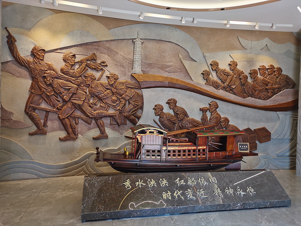 在嘉興地方黨史陳列館,首先映入眼簾的是一艘精致的紅船模型和一組浮雕作品,紅船模型前印著“秀水泱泱,紅船依舊,時代變遷,精神永恒”16個剛勁有力的大字。在黨史館里,一張張泛黃的老照片、一段段珍貴的文字,一件件老物件,向我們展現了一部鮮活的嘉興地方黨史,讓我們一起重溫黨的奮斗歷程。