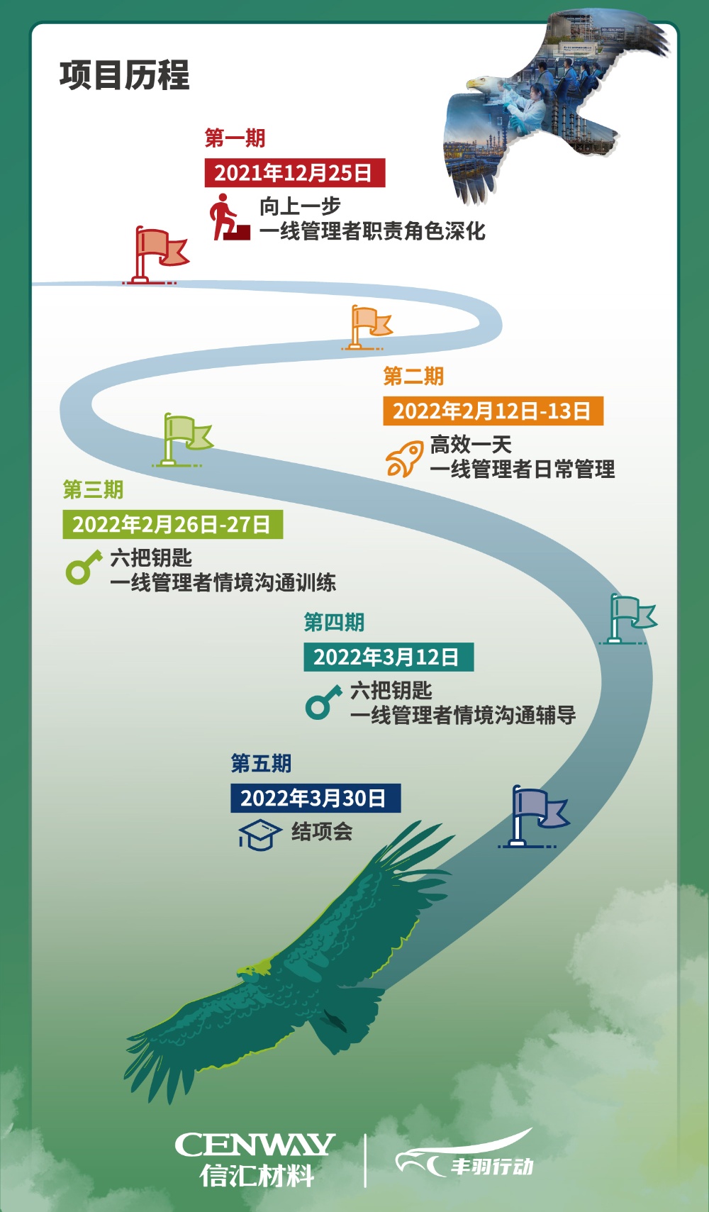 本次培訓(xùn)是豐羽行動(dòng)第一期,公司希望通過全面系統(tǒng)的培訓(xùn),讓生產(chǎn)一線管理者的工作技能和管理水平得到全面提升,讓自己的羽翼更加豐滿,為公司高質(zhì)量發(fā)展貢獻(xiàn)力量,使自己的人生更加精彩。